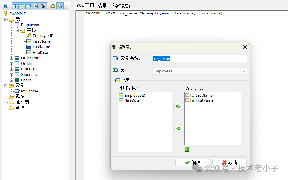 CREATE INDEX idx_name ON employees (lastname, firstname);
