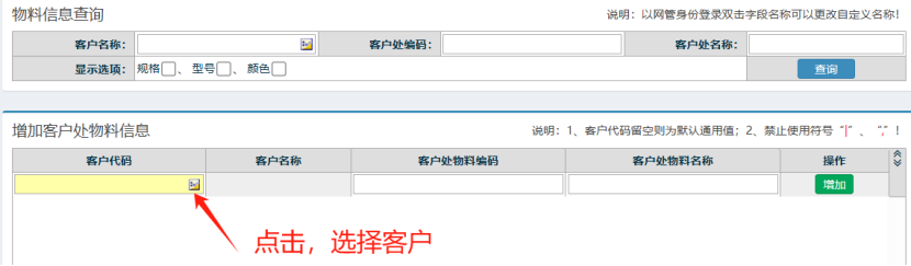 在弹出的新窗口点击客户代码进行选择