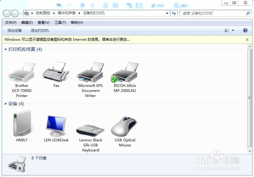 :怎么取消打印机共享?![]() 职场中,经常使用共享打印机,以减少公司资源浪费。但假如原来共享的打印机,不共享给同事,要专人专用。这要怎么取消原来共享的打印机? 第一步:点击开始,选择设备和打印机,出现以下内容。