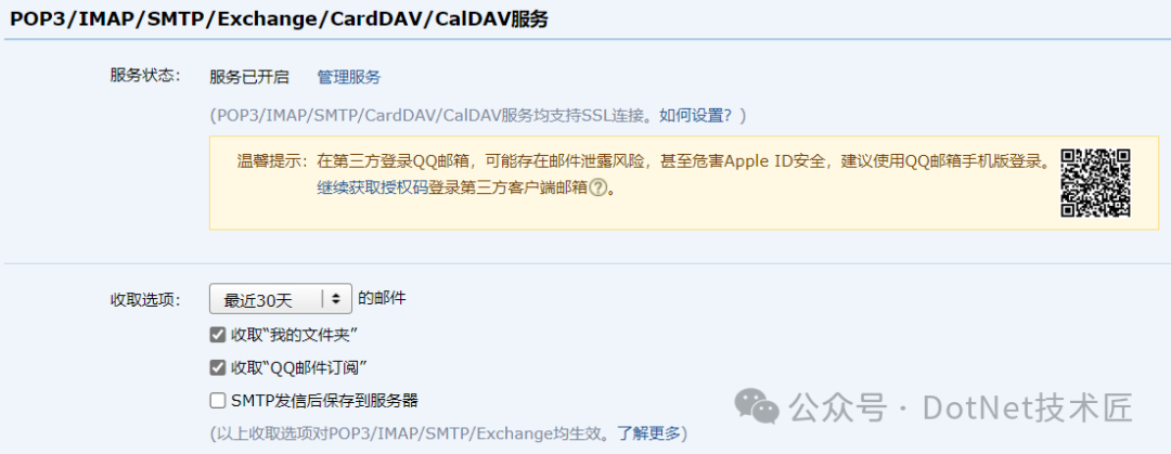 接收邮件服务器:imap.qq.com,使用SSL,端口号993