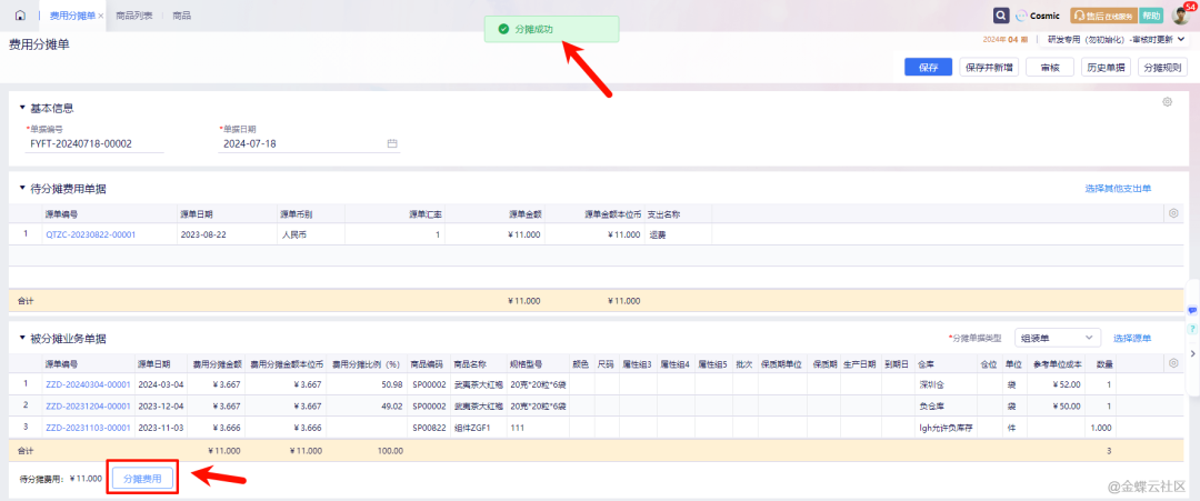 [点晴模切ERP]金蝶云星辰费用分摊单功能说明与应用场景