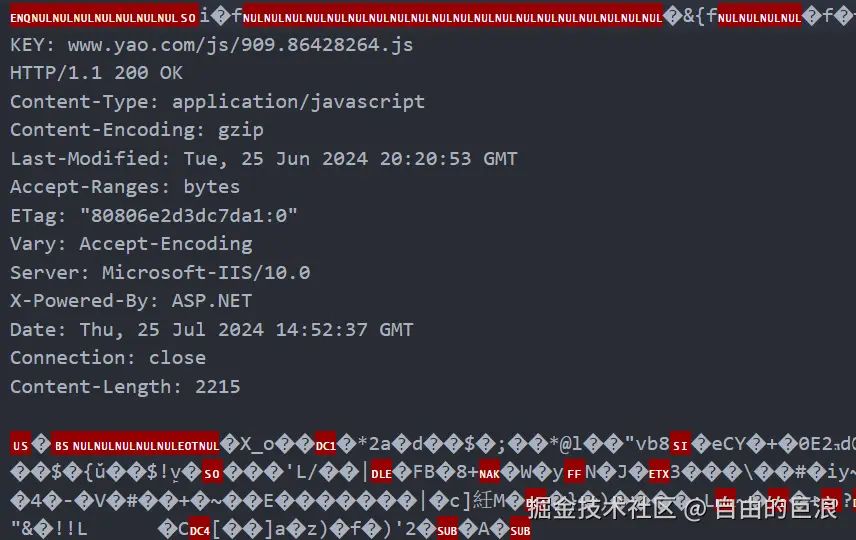 从截图我们可以看到,配置的2级缓存已经启用了。缓存的文件是二进制的内容,我截取一段用文本编辑器打开的数据来看看: