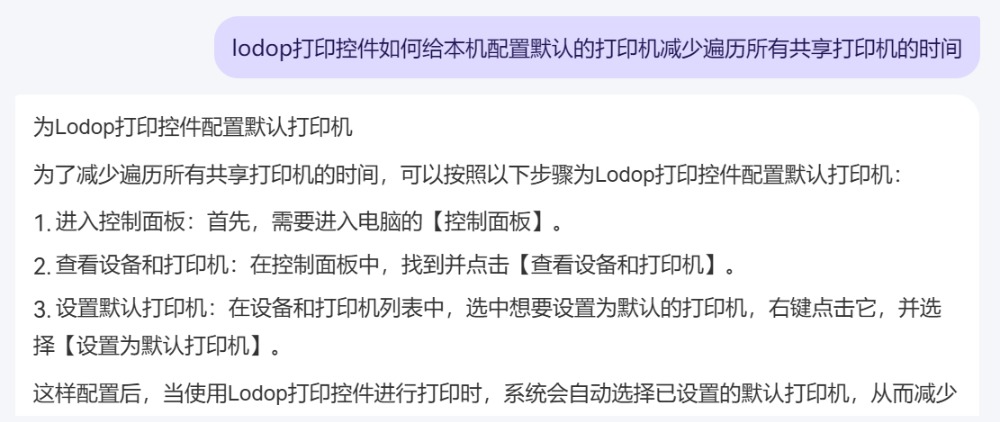 lodop打印控件如何给本机配置默认的打印机减少遍历所有共享打印机的时间