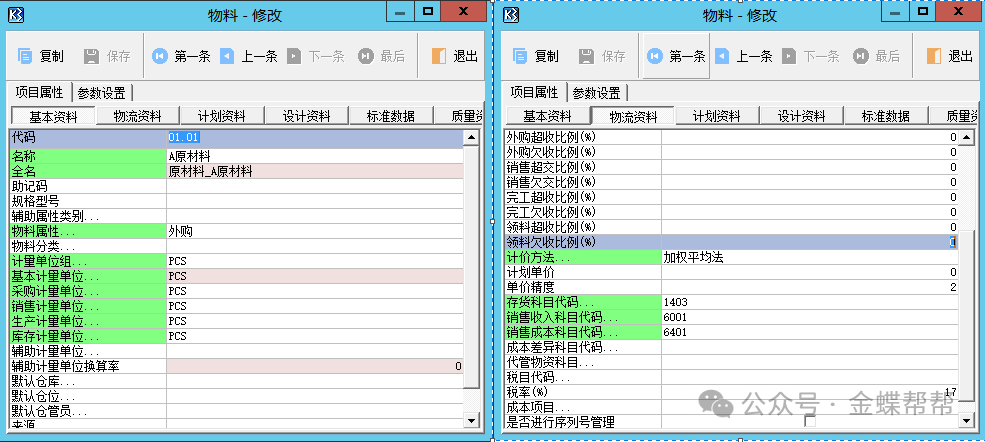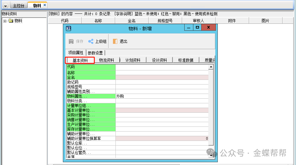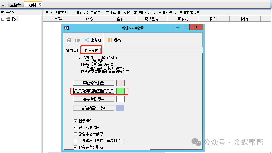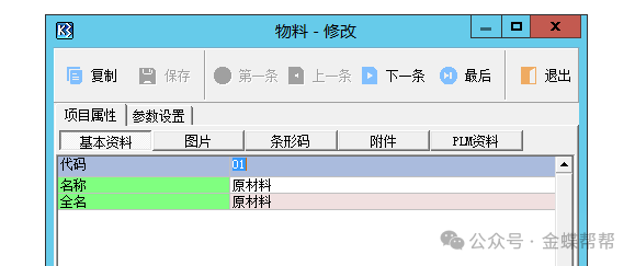 1、导入资料总共分几步,在账套的计量单位,会计科目已经建立完毕情况下,只要四步。 第一步建立资料,第二步导出资料,第三步整理资料,第四步导入资料。 2、第一步建立资料,系统分上级组新增和非上级组新增2个界面,上级组新增只需要输入代码和名称,非上级组就默认有必录项目,通过“参数设置”修改必录项目颜色,更醒目的对应输入信息。金蝶的物料编辑上级和下级是以“.”区分,例如:01表示一级,01.01表示二级,01.01.01表示三级。只有最明细的物料才能在业务单据上面选择到;