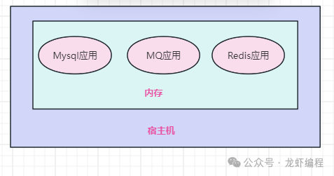 假设Mysql应用、MQ应用以及Redis应用都是docker部署的,此时上图区域的内存是三个应用共享的。这里就存在一个问题,如果MQ应用占用了80%的内存,那么Mysql和Redis就只能共用剩余20%的内存,假设这个剩余的内存不够Mysql使用,这个时候就会出现Mysql无法提供正常的服务导致整个上层的应用崩溃。