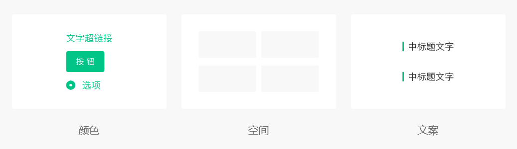 • 空间:间距上需要有一致性,规律的排版可以方便设计开发工作和提升用户的页面阅读体验。