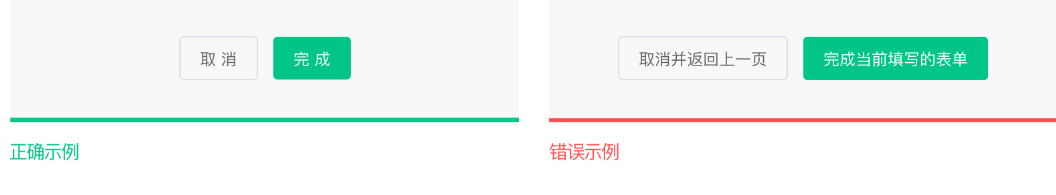 • 逻辑关系:有逻辑关联的按钮或内容,可以做进行分组,如:启用 / 禁用、完成 / 取消。