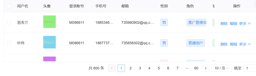 • 列表页数据行操作列按钮,统一超链接文字展示,最多展示三个,超过三个自动折叠,显示更多, 常用操作居左,需谨慎操作的按钮突出显示,并且需有二次确认操作。