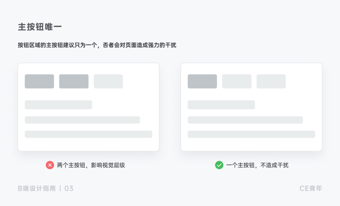• 在页面当中,按钮区域的主按钮最好只有一个,否则会对页面的主要功能造成干扰。