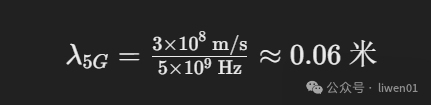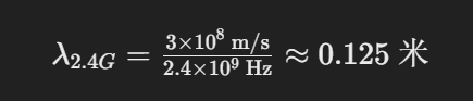 按照上面公式计算 2.4Ghz 与 5GHz 无线电波的波长分别为 12.5 厘米和 6 厘米。