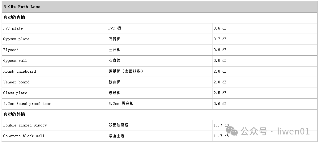 5G WiFi典型穿透损耗经验值
