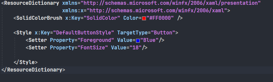 我们常常会使用样式或者控件模板放在Window.Resources中,比如这样: