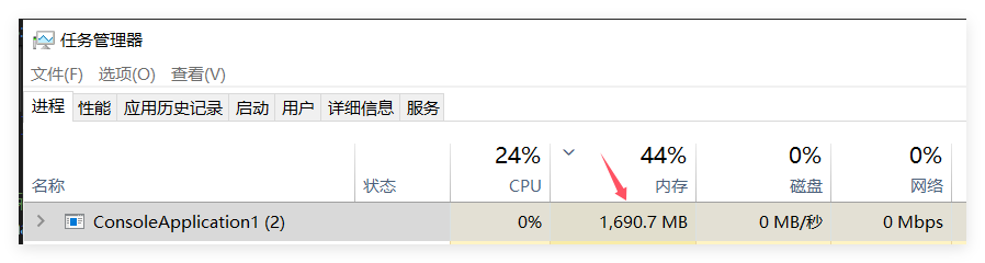 在 bitmap.Dispose(); 之前加上一个 Console.ReadLine(); 故意不销毁 bitmap 来观察下内存消耗,真是不看不知道,一看吓一跳,居然吃了高达 1.7G 的内存。