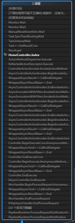 从HomeController.Index进来,停止在ManualResetEventSlim.Wait 死锁原因: