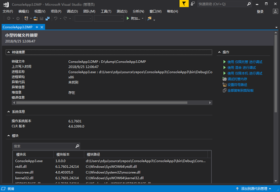 二.DebugDiag下载地址 https://www.microsoft.com/en-us/download/details.aspx?id=49924 点击 【Add Data Files】 添加Dump文件后 点击 【Start Analysis】 执行 执行成功后会自动用 IE 打开。 其实和 VS比起来差不多,直接生成一个报告也是比较方便的! 三.WinDbg虽然使用上比较麻烦但是winDbg可以帮助我们分析的更加详细 可以从微软官方下载,为了方便百度云下载地址: 链接: https://pan.baidu.com/s/1eblPm4nuN0F-DkY_FzqUvA 提取码: zmtd 注意要设置下Symbol Path 重新设置符号文件路径如下; SRV*C:\Symbols*http://msdl.microsoft.com/download/symbols 意思是如果在本地找不到则从微软网站下载 Ok设置完成后用WinDbg载入dump文件 如下图所示: 打开成功后我们还不能开始分析必须 要先执行加载SOS和CLR(对于.Net Runtime 4.0) 【 !loadby sos clr】 命令