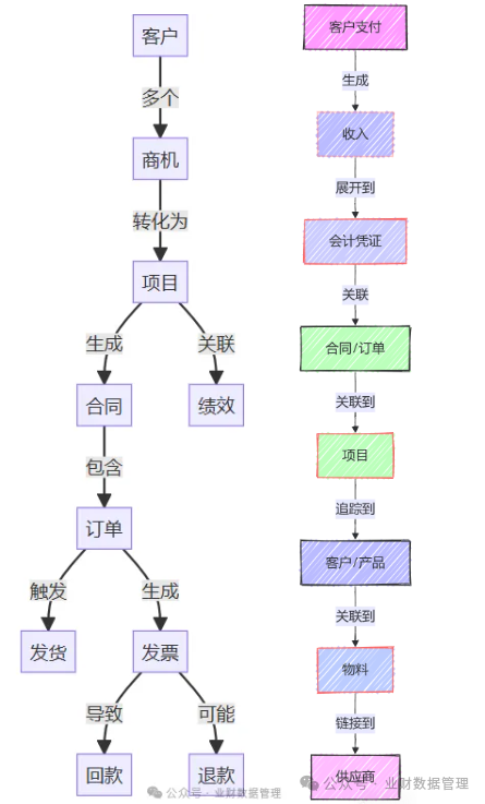 想象一下,一家项目型企业通过数据要素的高水平应用,实现了业财流程的无缝对接,通过拉通业财,我们可以从财务到业务前端,从管理到交易层层展开,从而实现数据的深层次挖掘。“业财一体化是指企业在做任何业务决策的时候,瞬间就知道财务结果。业务和财务本身就是一体的,从来没有分开过。”