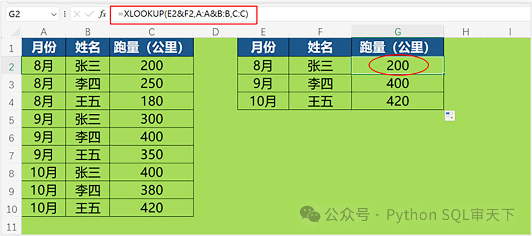 根据月份和姓名查找跑量,需要使用&连接符。