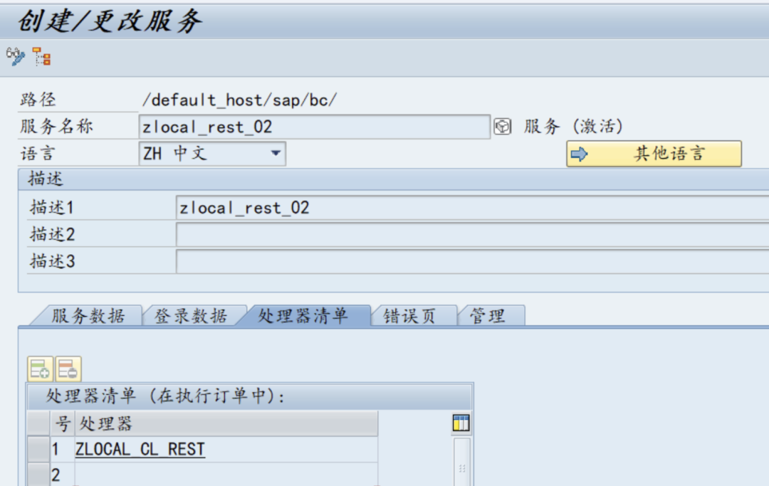 配置如下,处理器为 ZLOCAL_CL_REST ,即第一次创建的类。
