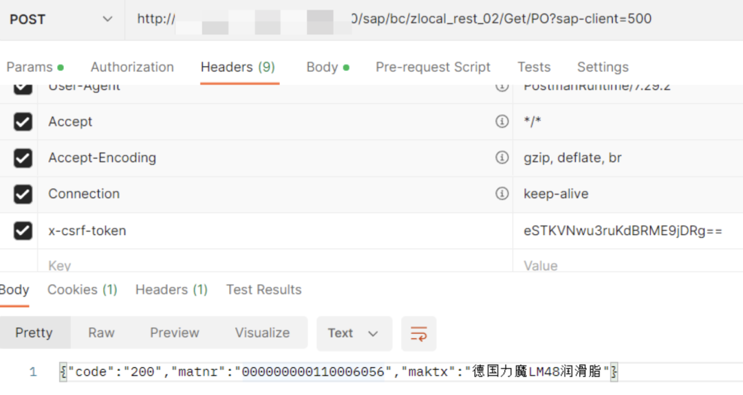 使用token 需要在 POST 方式调用,先对类ZLOCAL_CL_GET_PURCHASEORDER中的方法IF_REST_RESOURCE~POST 重构,为了测试这里简单重构了。