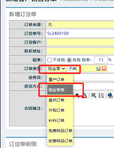 点晴模切ERP-销售订单类型说明