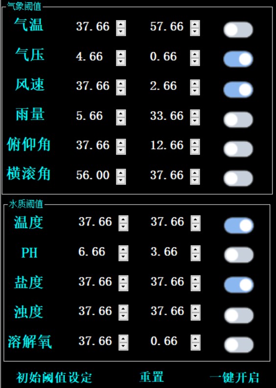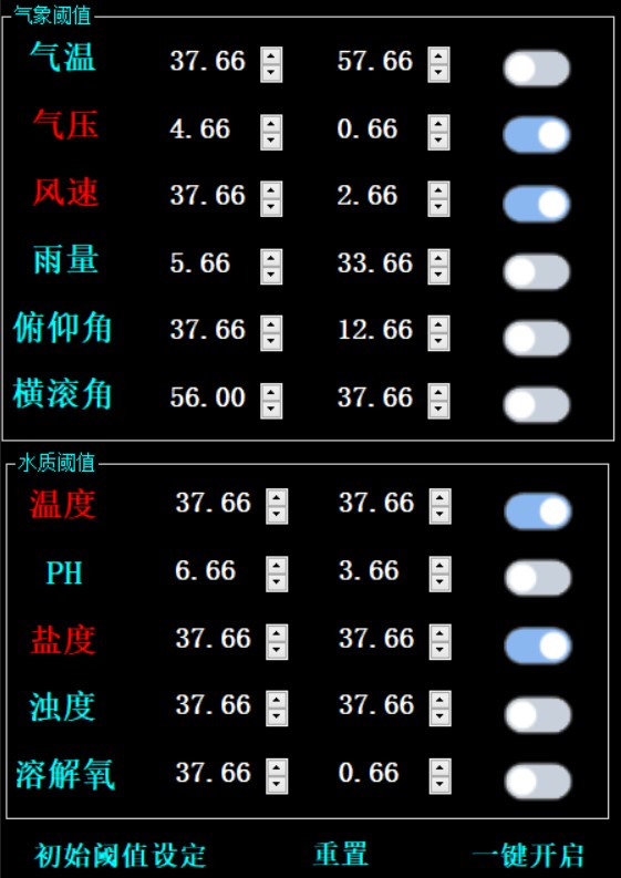 点击阈值设置按钮可展出阈值设置界面,再次点击隐藏,如下图: