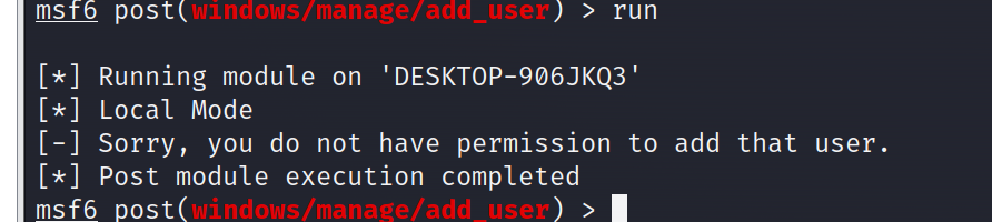 | [*] Running persistent module against DESKTOP-906JKQ3 via session ID: 1 |