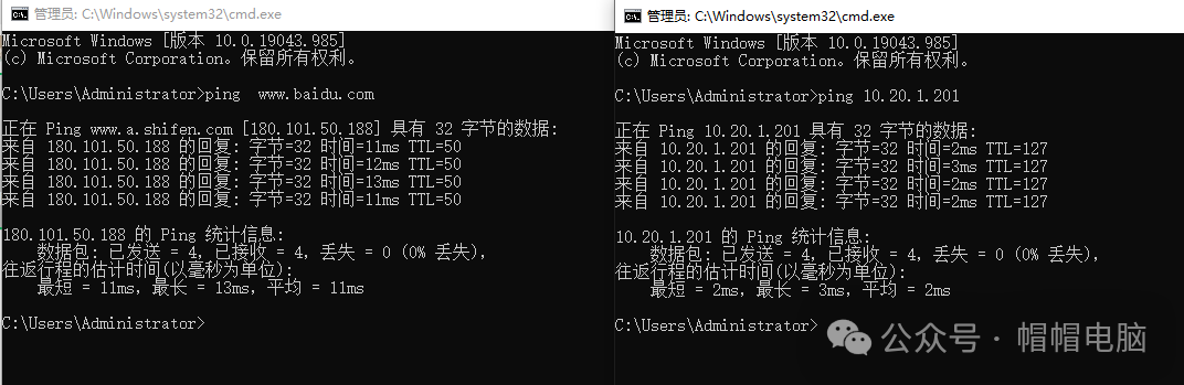 到这里设置好了接下来,电脑上内网的服务器和发邮件,浏览网页均OK,下面测试一下,分别ping一下百度域名,和内网服务器OA的域名地址。成功搞定。