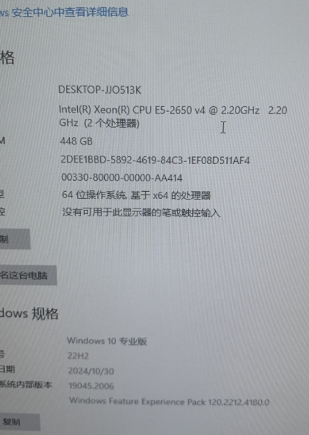 我还在想是不是客户安装的系统有问题,让拍张照片过来看一下,可以看到,客户安装的系统的确是win10专业版本,版本:22H2。