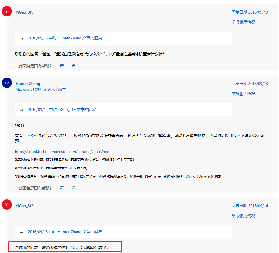 他的解决办法是取消休眠解决了这个问题。
