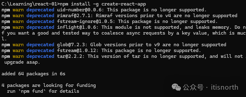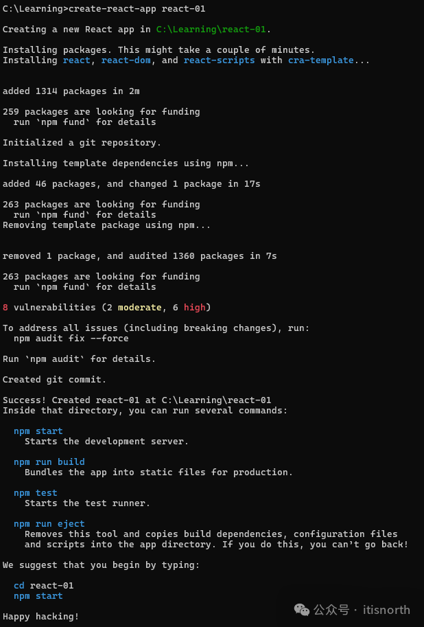 然后执行以下命令创建第一个 react 项目。