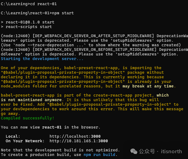 通过该命令我们无需配置就能构建 React 开发项目。