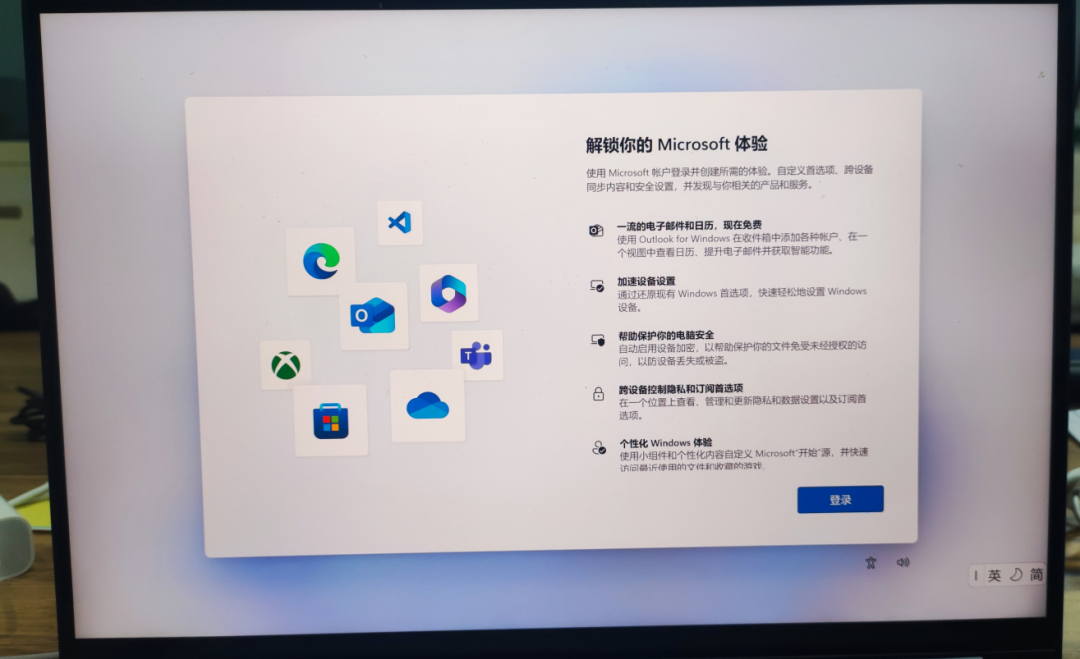 更新完成之后,就准备开始配置windows开机用户名了。点击登录。