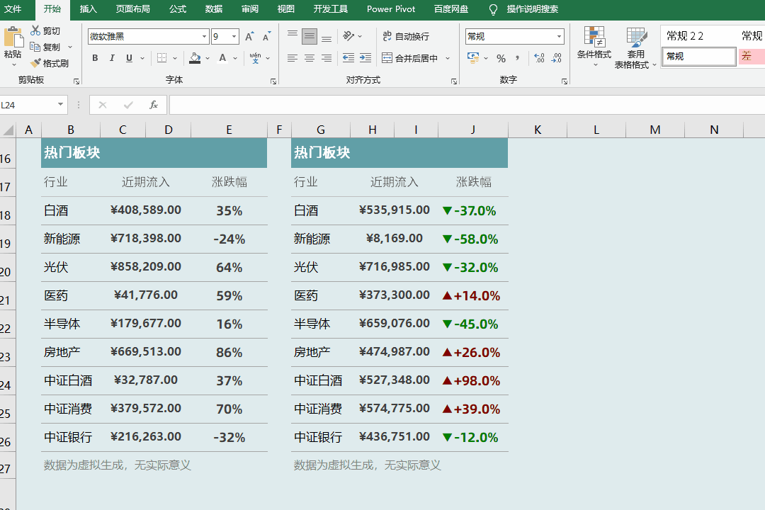 7.如何让正负数值带不同颜色 在单元格格式-自定义,输入“[颜色9]↑+0.0%;[颜色10]↓-0.0%”,可以实现单元格带颜色和箭头。