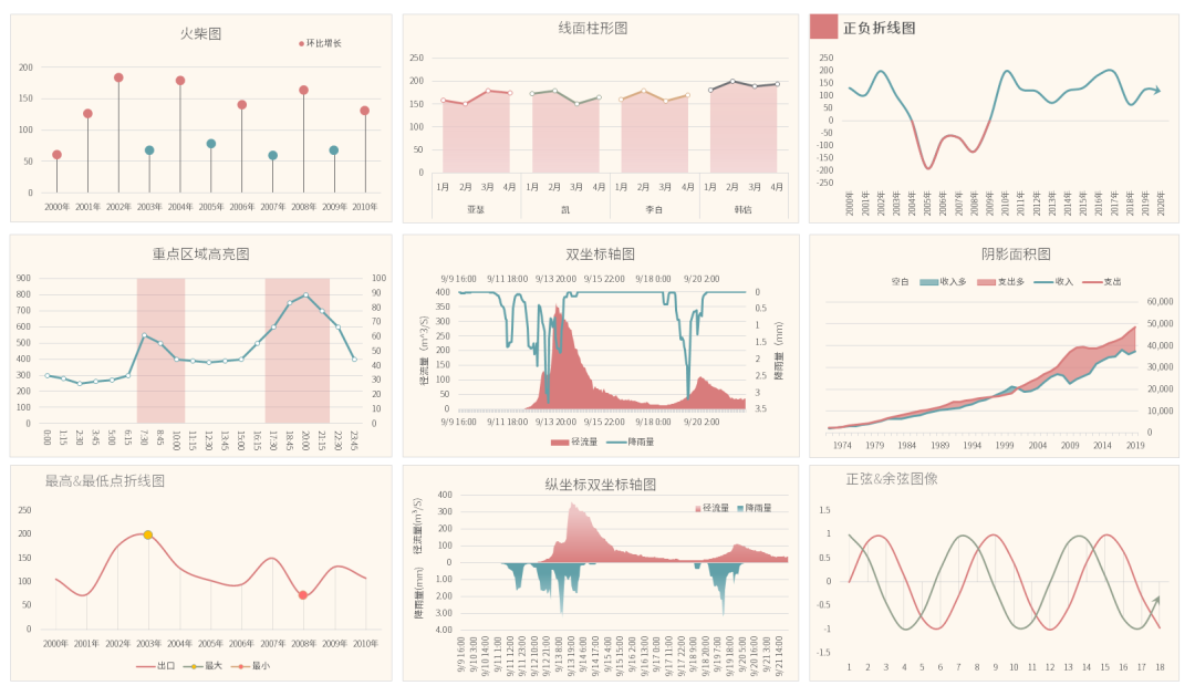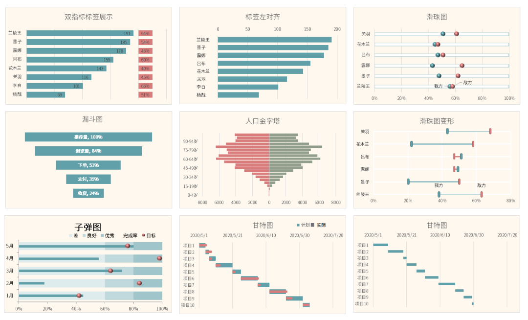 当然以上所列举的内容仅仅是Excel图表的一小部分,日常中我们要多发现,多借鉴,才能制作出符合工作实际,专业、好看的可视化图表。