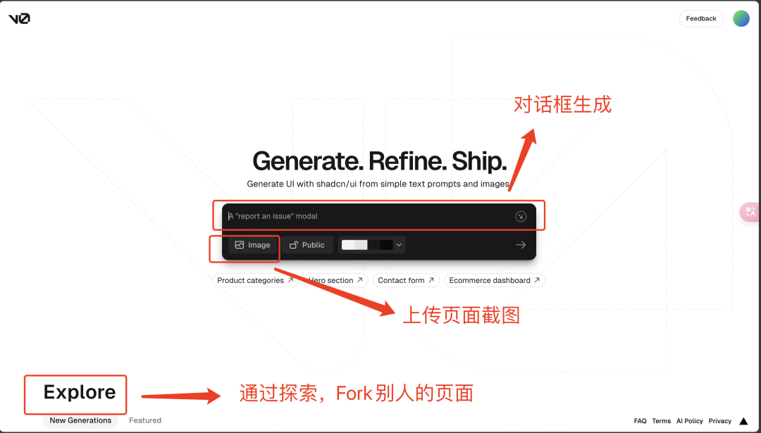 v0提供了三种便捷的方式来帮助你创建首个页面: