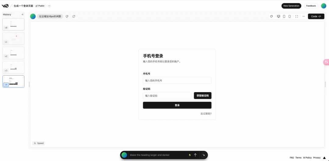 :AI神助攻】用"v0",自然语言秒变网站