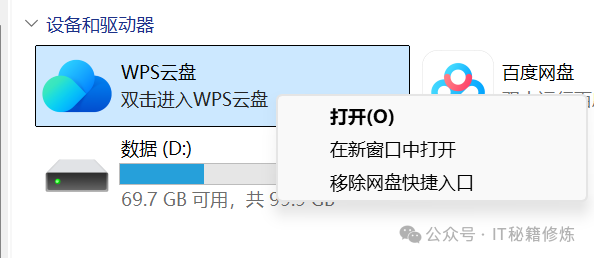 出现在“我的电脑”中的WPS云盘、百度网盘、迅雷下载快捷方式,滚蛋吧