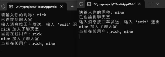 4.2 聊天室服务器示例 using WebSocketSharp.Server; using WebSocketSharp; using ErrorEventArgs = WebSocketSharp.ErrorEventArgs; namespace AppChatServer { // 聊天室处理类 public class ChatRoom : WebSocketBehavior { private static Dictionary< string , string > _users = new Dictionary< string , string >(); private string _nickname; protected override void OnOpen () { // 从 Context.QueryString 获取昵称 var queryString = Context.QueryString; _nickname = queryString[ "nickname" ] ?? $ "Anonymous_{GetRandomString(4)}" ; lock (_users) { _users[ID] = _nickname; } Console.WriteLine($ "新用户加入: {_nickname}" ); Sessions.Broadcast($ "{_nickname} 加入了聊天室" ); // 发送当前在线用户列表 var userList = string .Join( ", " , _users.Values); Sessions.Broadcast($ "当前在线用户: {userList}" ); } protected override void OnMessage (MessageEventArgs e) { Console.WriteLine($ "收到消息 from {_nickname}: {e.Data}" ); Sessions.Broadcast($ "{_nickname}: {e.Data}" ); } protected override void OnClose (CloseEventArgs e) { lock (_users) { _users.Remove(ID); } Console.WriteLine($ "用户离开: {_nickname}" ); Sessions.Broadcast($ "{_nickname} 离开了聊天室" ); // 更新在线用户列表 var userList = string .Join( ", " , _users.Values); Sessions.Broadcast($ "当前在线用户: {userList}" ); } protected override void OnError (ErrorEventArgs e) { Console.WriteLine($ "发生错误 ({_nickname}): {e.Message}" ); } private string GetRandomString ( int length) { const string chars = "ABCDEFGHIJKLMNOPQRSTUVWXYZ0123456789" ; Random random = new Random(); return new string (Enumerable.Repeat(chars, length) .Select(s => s[random.Next(s.Length)]).ToArray()); } } // 服务器主程序 class Program { static void Main () { // 创建 WebSocket 服务器 var wssv = new WebSocketServer( "ws://0.0.0.0:4649" ); // 添加聊天室服务 wssv.AddWebSocketService<ChatRoom>( "/chat" ); // 启动服务器 wssv.Start(); Console.WriteLine( "聊天室服务器已启动在 ws://0.0.0.0:4649/chat" ); Console.WriteLine( "按任意键停止服务器..." ); Console.ReadKey( true ); // 停止服务器 wssv.Stop(); Console.WriteLine( "服务器已停止" ); } } } 客户端 using WebSocketSharp; namespace AppChatClient { class Program { static void Main () { Console.Write( "请输入你的昵称: " ); string nickname = Console.ReadLine()?.Trim() ?? "Anonymous" ; // 创建WebSocket连接,包含昵称参数 using (var ws = new WebSocket($ "ws://127.0.0.1:4649/chat?nickname={Uri.EscapeDataString(nickname)}" )) { bool isConnected = false ; // 连接建立时的处理 ws.OnOpen += (sender, e) => { isConnected = true ; Console.WriteLine( "已连接到聊天室" ); Console.WriteLine( "输入消息按回车发送,输入 'exit' 退出" ); }; // 接收消息的处理 ws.OnMessage += (sender, e) => { Console.WriteLine(e.Data); }; // 发生错误时的处理 ws.OnError += (sender, e) => { Console.WriteLine($ "错误: {e.Message}" ); }; // 连接关闭时的处理 ws.OnClose += (sender, e) => { isConnected = false ; Console.WriteLine($ "连接已关闭: {e.Code} {e.Reason}" ); }; try { // 连接到服务器 ws.Connect(); // 消息发送循环 while (isConnected) { string message = Console.ReadLine() ?? "" ; if (message.ToLower() == "exit" ) break ; if (! string .IsNullOrEmpty(message) && ws.ReadyState == WebSocketState.Open) { ws.Send(message); } } // 正常关闭连接 if (ws.ReadyState == WebSocketState.Open) { ws.Close(CloseStatusCode.Normal); } } catch (Exception ex) { Console.WriteLine($ "发生异常: {ex.Message}" ); } Console.WriteLine( "按任意键退出..." ); Console.ReadKey(); } } } }