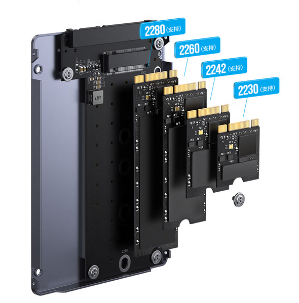 如上图所示,M.2 接口的固态硬盘,根据宽度和长度分为:2230、2242、2260、2280、22110 ,目前 2280 是最常见的规格。