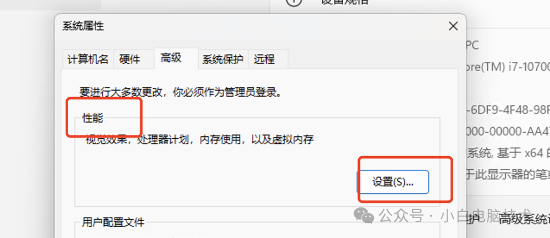 点击性能框里的【设置】