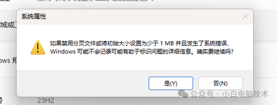 接着选择【C】,点击【无分页文件】-【设置】,就提示这个,点击【确定】