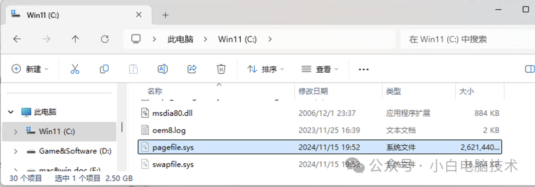 重启一下系统之后就会发现C盘的分页文件没了,而是到了D盘