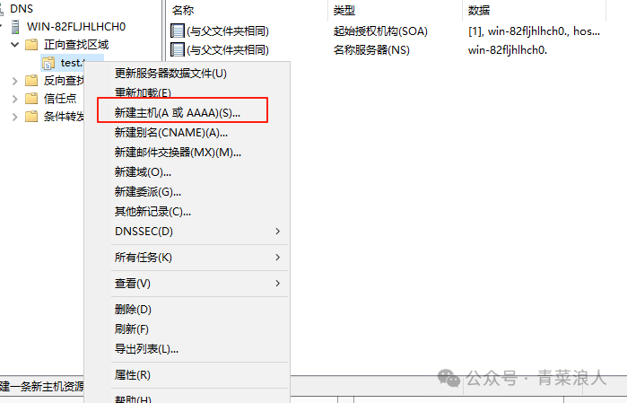 环境准备1.windows server服务器一台,192.168.10.66,192.168.10.67; 2.windows11客户端,192.168.10.65; 安装DNS服务PS:具体安装过程请查看往期文章:Win-Server下安装&配置DNS服务 1.添加DNS服务器.注:安装前需配置静态IP,避免IP变动导致客户端无法解析