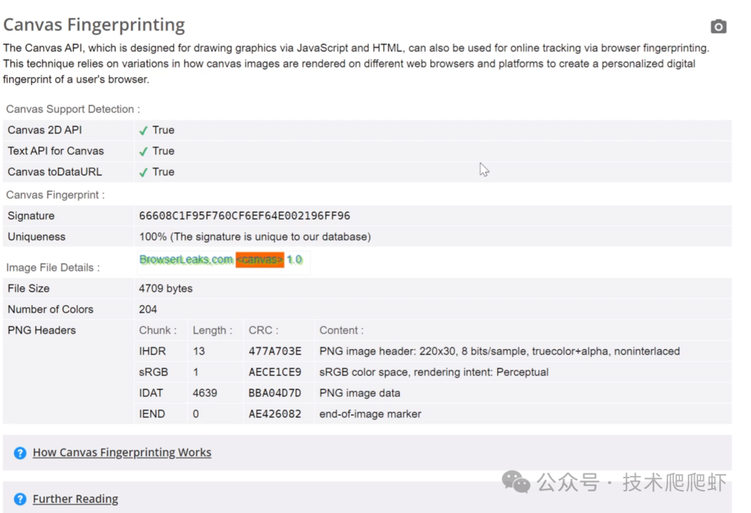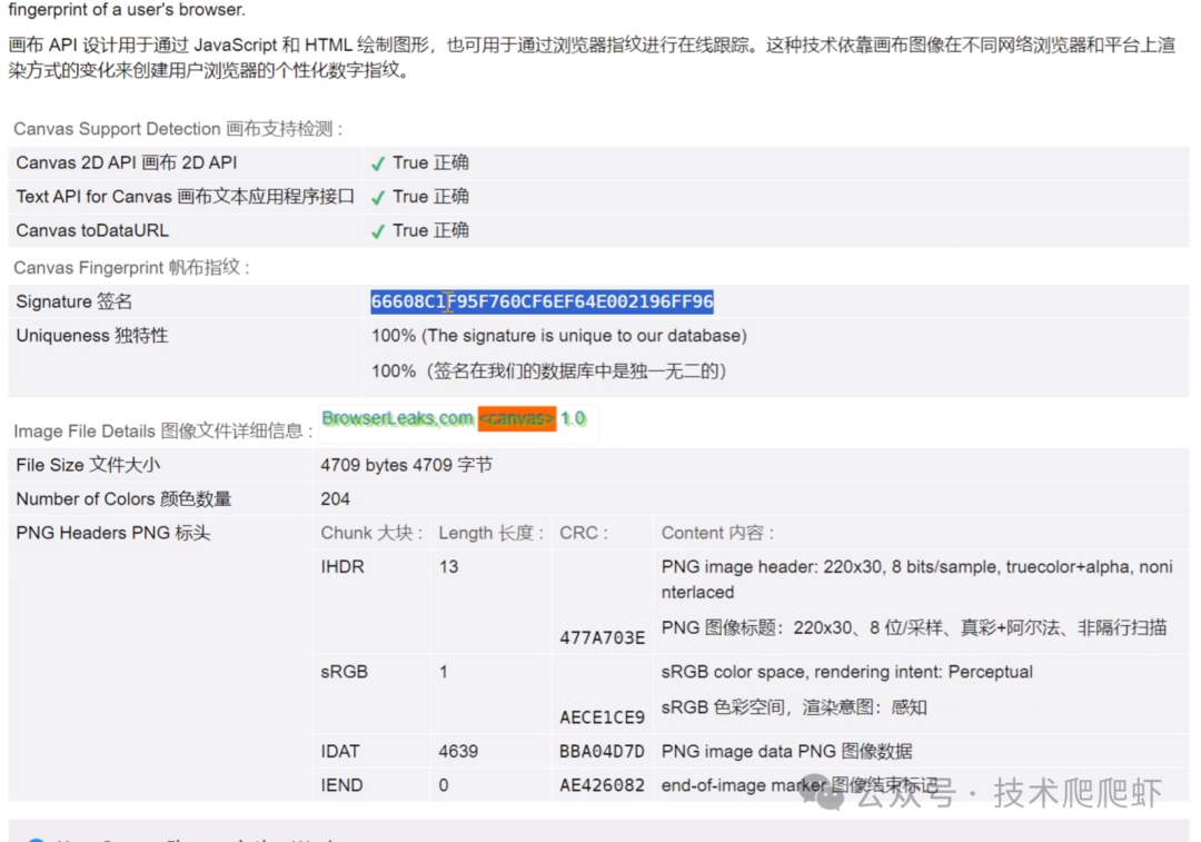 这里我通过网站测试了一下,他通过canvas计算生成了一个canvas的签名。