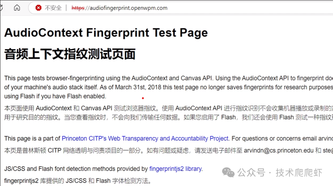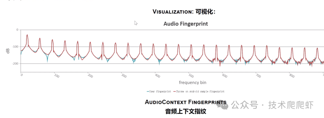 每个设备处理声音的细微差异都可以被网站捕捉到,形成一种特殊的声音指纹。它反映了每个人电脑上的不同音频硬件和软件的设置,所以它也就成为了浏览器指纹之一。