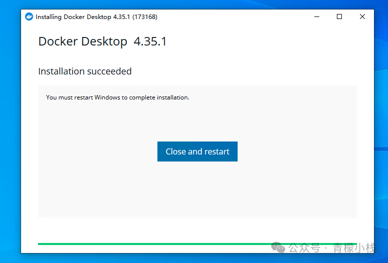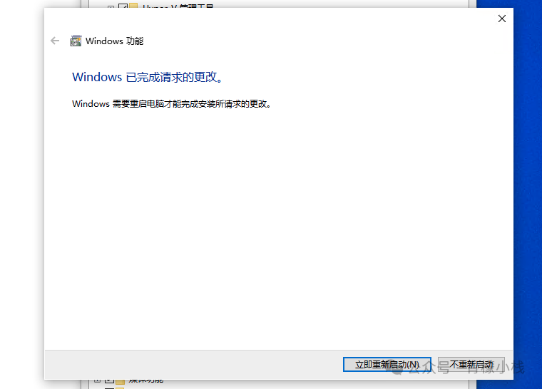 点击确定后,Windows 会自动安装需要的服务,安装完成后,会要求我们重启电脑,根据提示重启即可。