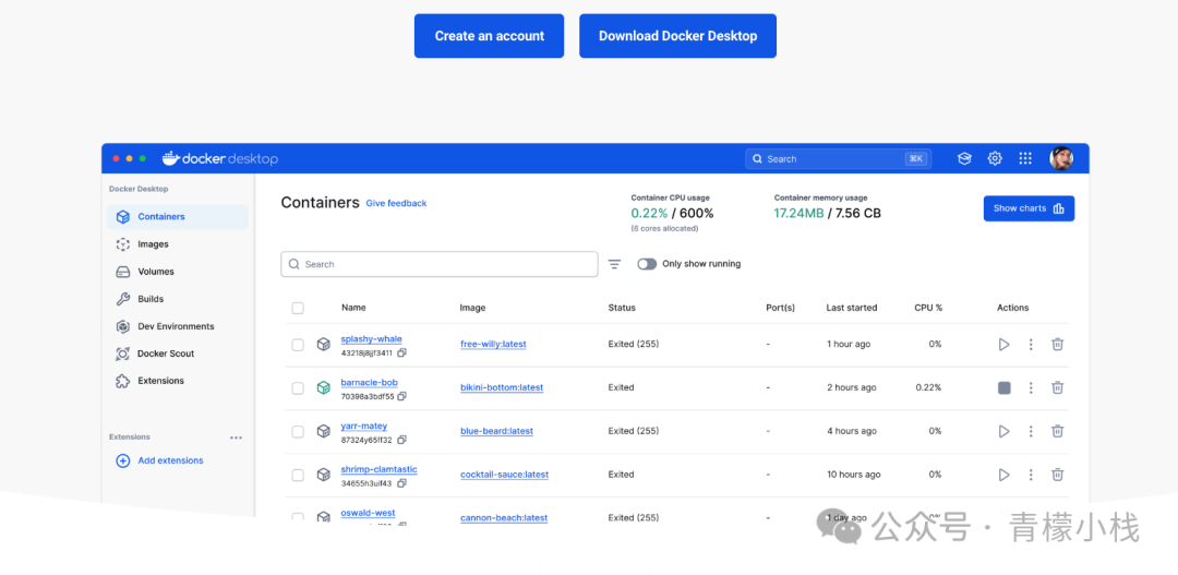 点击 ![]() ![]() 这样我们就进入到了 Docker 服务的主界面中: