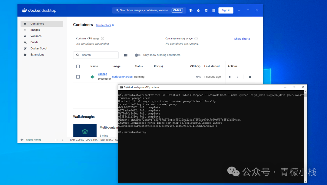 UpSnap:搭建一款开源且精美的网络唤醒服务 我们在 然后可以看到拉取镜像,并创建启动容器,并在 docker 的 GUI 界面中可以看到正在运行的服务信息: