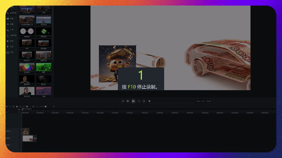 Camtasia跟剪映哪一个好用针对普通的用户,都知道剪映是一款比较友好的视频剪辑工具,操作方便,容易上手。根据我日常视频剪辑的感受,我觉得两者各有千秋。Camtasia可以完成一些剪映做不了的事情,比如拖拽式层叠视频,像下方这种效果,一个视频上面播放另外一个视频,使用Camtasia就是简单的拖拽就能完成。还有很多剪映没有的功能,当然,剪映也有很多功能,是Camtasia不具备的。