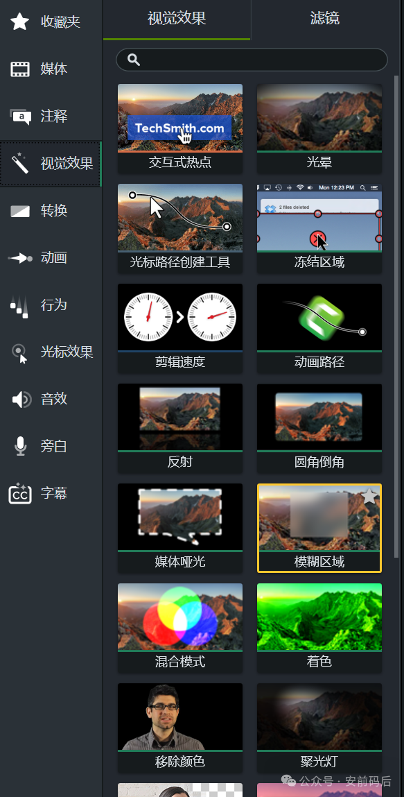 前言工作久了,应该有很多朋友跟我一样,平时会利用一些时间搞搞自媒体,分享一些有用的干货。对于自媒体人而言,很多时候你的内容很好,但是展示形式的效果却并不理想,这会导致你们引流的效果可能会接近于0,最后就是想想你们愿意付费的课程,第一印象肯定是因为人家整理的内容很完善,视频质量也很高,才会让你产生一种付费的欲望。对于非专业视频剪辑出身的我们而言,熟练掌握AE、PR这些工具对我们来说时间成本非常高,难度也很大。 好了,今天就分享一个我们平时用的比较多的一个媒体工具——Camtasia。 Camtasia简介Camtasia是由TechSmith开发的一款多合一屏幕录像机程序,它不仅是一个屏幕录像机,也是一个视频编辑器。Camtasia允许用户从计算机屏幕捕获视频和音频,并通过麦克风将声音添加到屏幕录制中。它支持Windows和MacOS X系统,为用户提供了强大的视频制作能力。